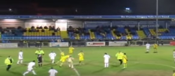 فقد حصل اللاعب آشلي فيكرز من نادي دورشيستر على بطاقة حمراء بعد أن طرح أرضًا شخصًا من الجمهور اقتحم الملعب وهو شبه عارٍ، ما أدى لطرده من المباراة من قِبل الحكم.