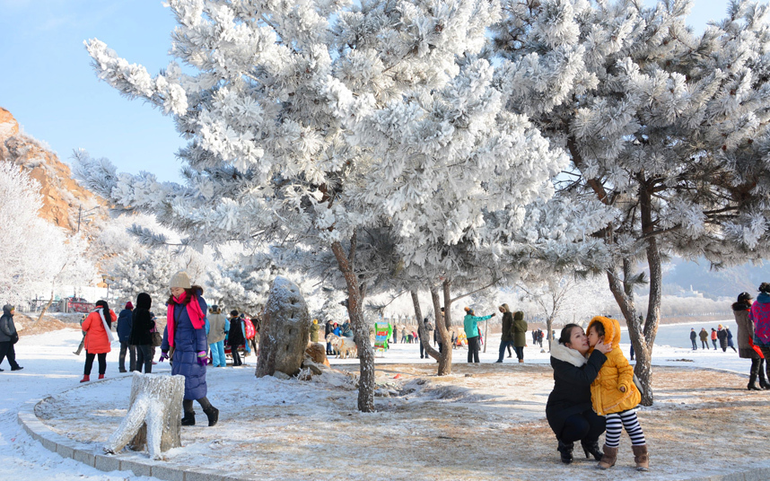11 يناير 2016 – الصين، سياح يتوافدون إلى متنزه “رايم آيس” في جزيرة على طول نهر سونغهوا في مدينة جيلين بمقاطعة جيلين.