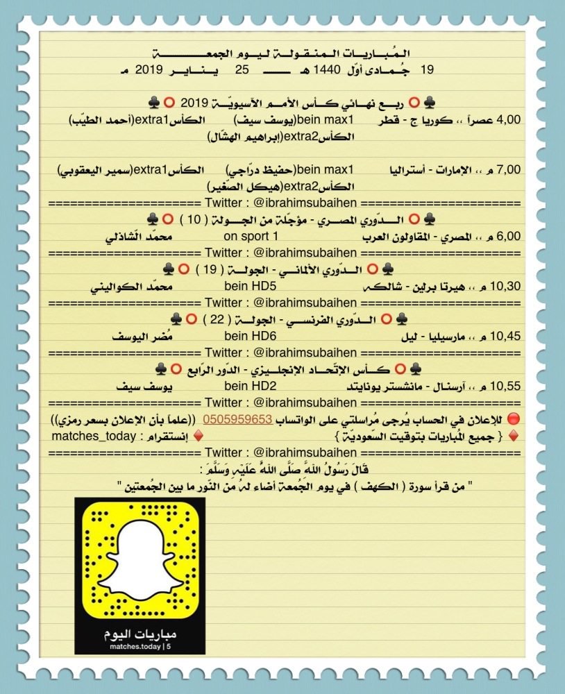 جميع المباريات بتوقيت مسقط