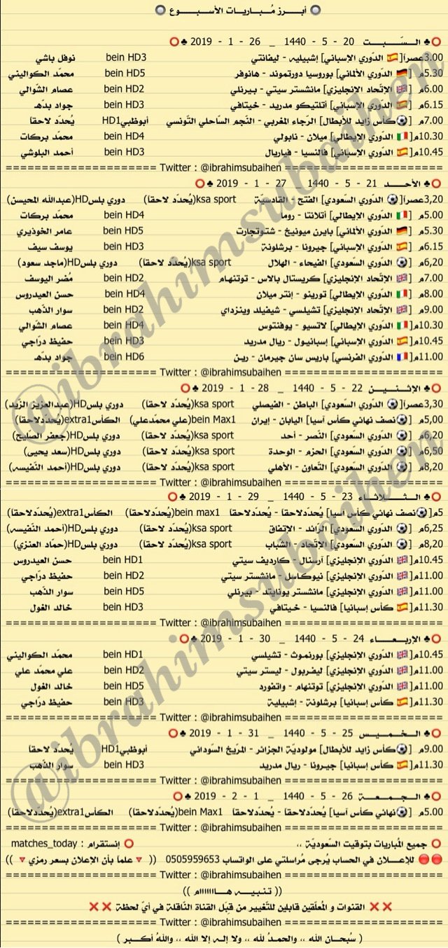 مباريات الأسبوع بتوقيت مكة